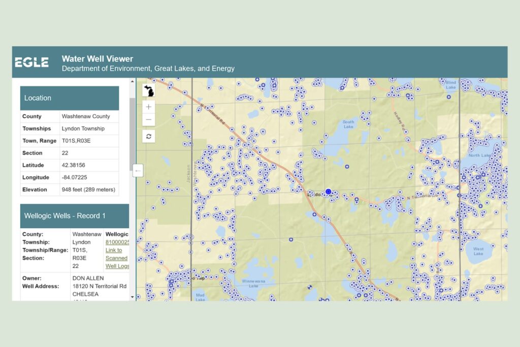 Having your well record is important for maintaining your well and knowing what its last tests revealed. You can look on the EGLE Well Water Viewer. The image below shows all the wells that have records in and near Lyndon Township. You can use EGLE Well Water Viewer to find if there are also any previous records for your well!